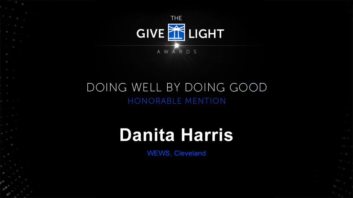 @danitaharris, anchor at@WEWS in Cleveland, received an honorable mention in The Doing Well by Doing Good category for S.H.I.N.E., an organization she founded that empowers women, domestic violence victims and the homeless.#givelightpic.twitter.com/zRwJrezTx5