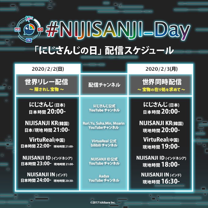 【本日20時から「世界配信リレー」スタート!】 20時より、全5ヶ国で配信を繋ぐ世界配信リレーがいよいよ開始します! トップは日本のにじさんじから!ぜひご覧ください! 待機場所はこちら▽ https://www.youtube.com/watch?v=BHzj630nXNo …