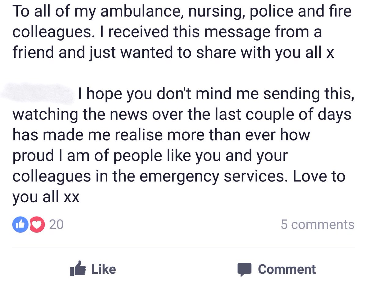 Thank you for the support, gratitude & love this week. Our services & communities stand together. This was shared by a member of staff:pic.twitter.com/5uqersU4Re