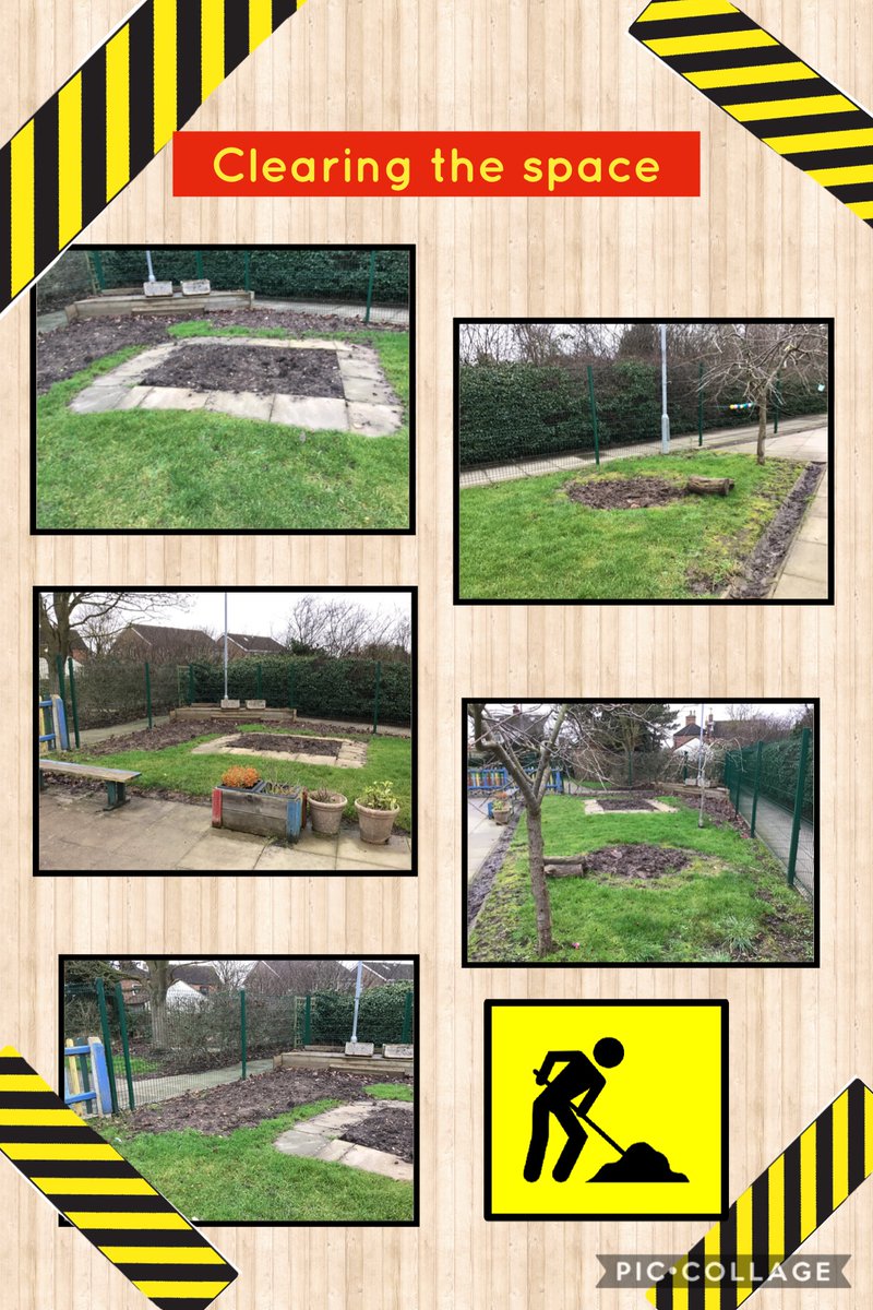In Nursery we are super excited to reveal we renovating our outside learning environment.... we have already begun to clear the space....