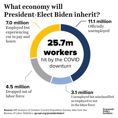 President-elect Biden will inherit an economy with more than 25 million workers hurt by the coronavirus downturn. It is both cruel and terrible economics that Mitch McConnell has adjourned the Senate with no COVID-19 relief. Learn more: https://www.epi.org/blog/what-the-next-president-inherits-more-than-25-million-workers-are-being-hurt-by-the-coronavirus-downturn/ …pic.twitter.com/CQ2nznOx9l