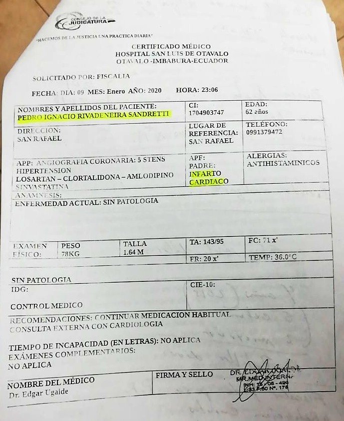 #NiUnPerseguidoMás | Es tal el irrespeto al debido proceso y a los Derechos Humanos que@FiscaliaEcuador pretende desconocer la enfermedad cardíaca de mi padre.@IESSec no entregó a su defensa el historial médico, pero en el parte policial constan sus padecimientos de salud