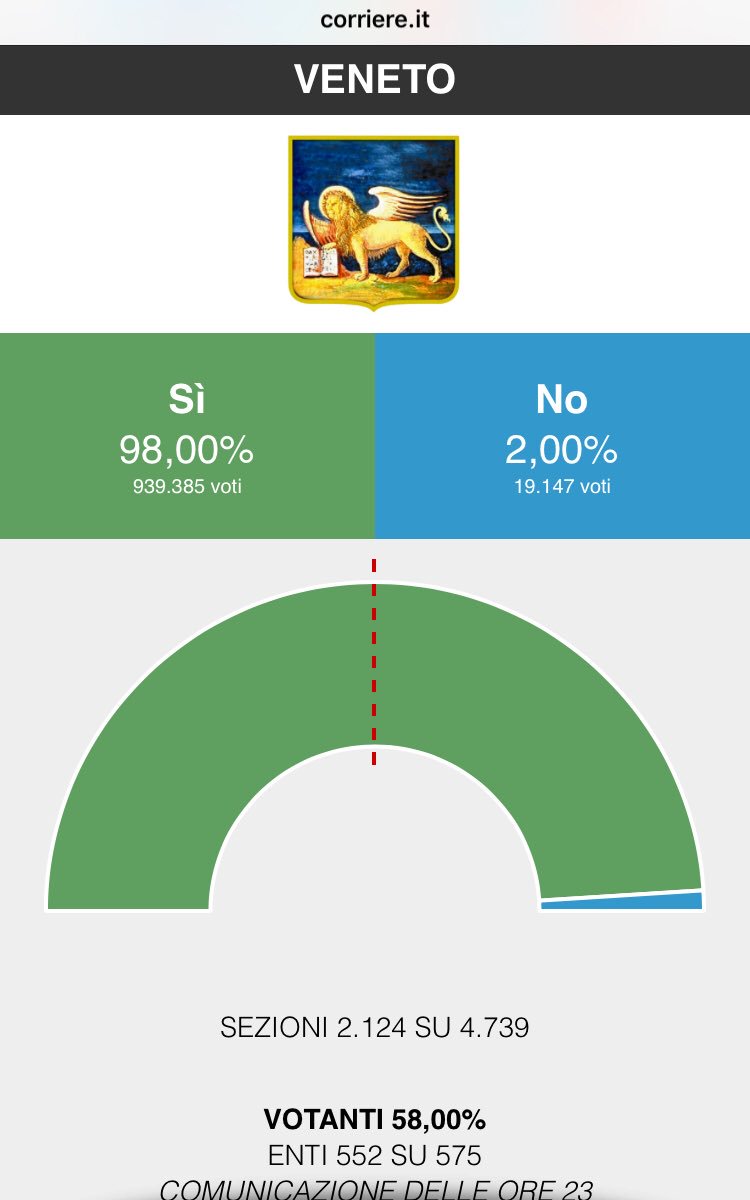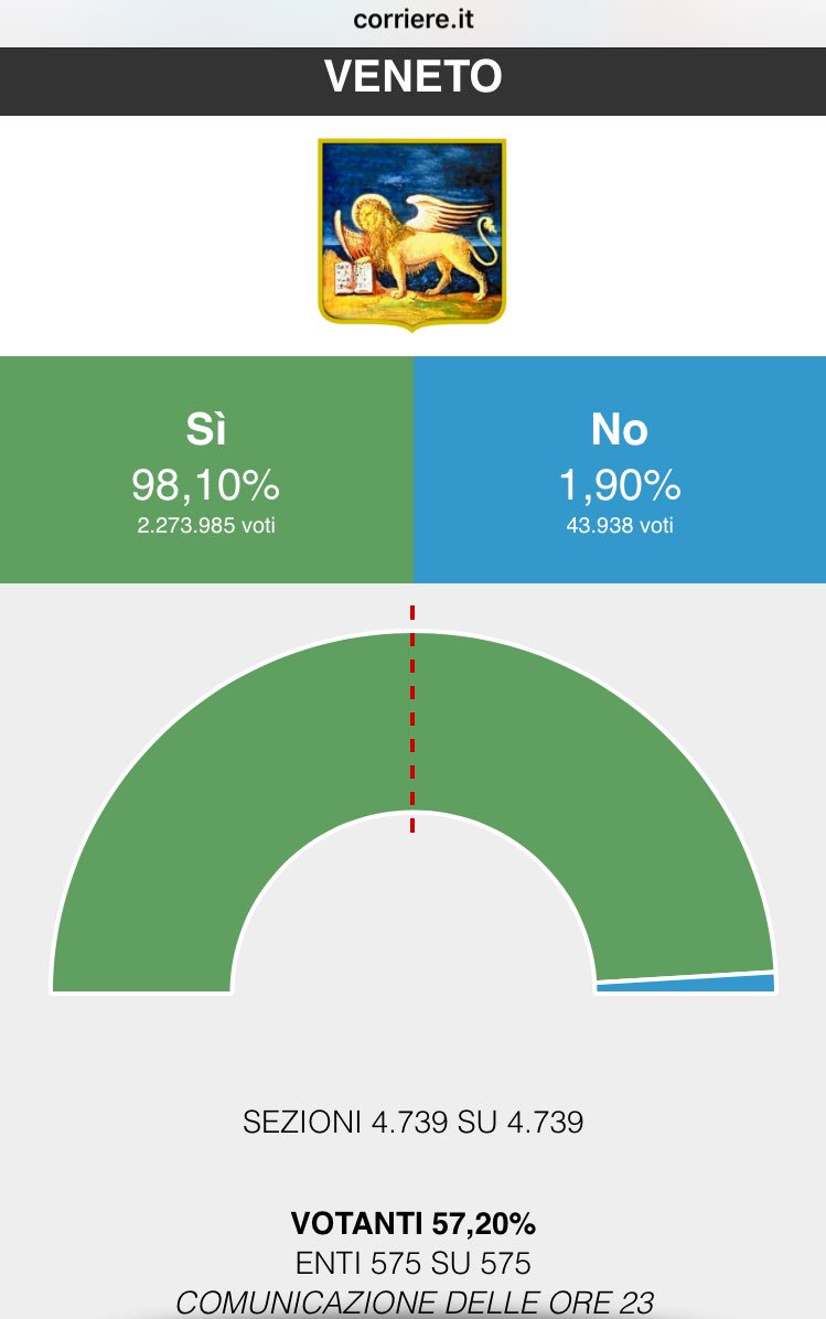 And consider that Italy did everything in his power to stop us...they also prevented venetian living abroad from voting...8% of venetian