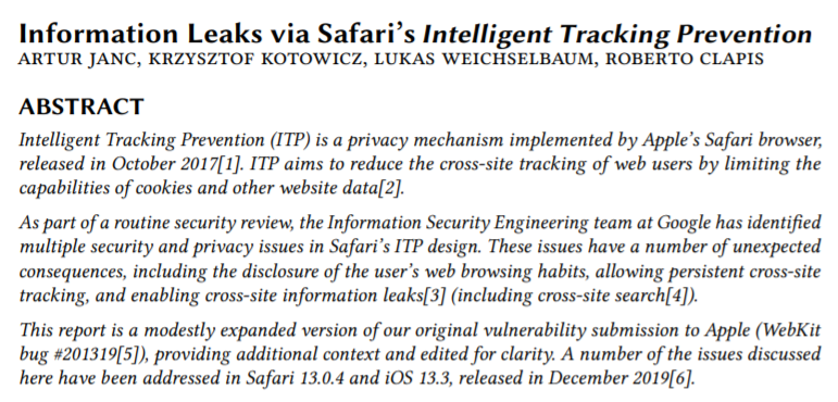 Fascinating paper detailing various attack vectors introduced by Safari’s Intelligent Tracking Prevention by