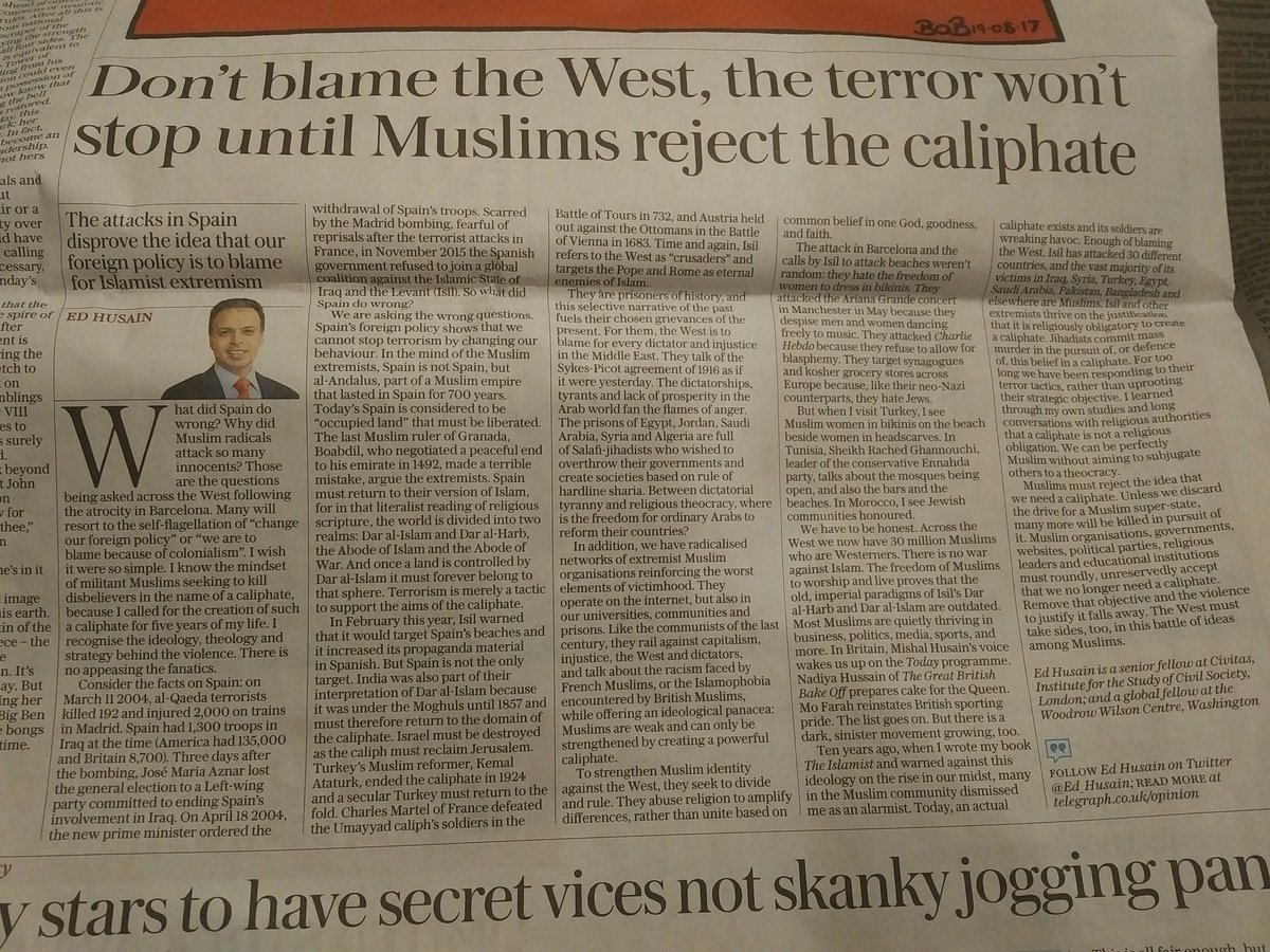 @Ed_Husain in yesterday's@dailytelegraph on why the Caliphate ambition leads to violence.pic.twitter.com/N5un60EBFR
