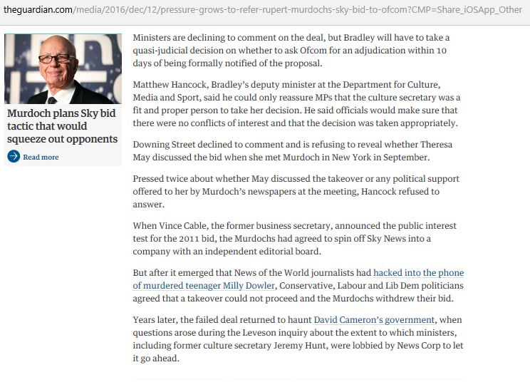 Right to take on M & I respect fact you never courted his approval but I'm cynical. It's going to happen.He always gets his way