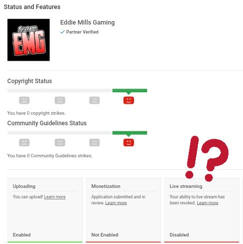 @YouTube @TeamYouTube why is my ability to live stream still revoked if i have 0 strikes???? Please help.pic.twitter.com/k7q1tDYUo1