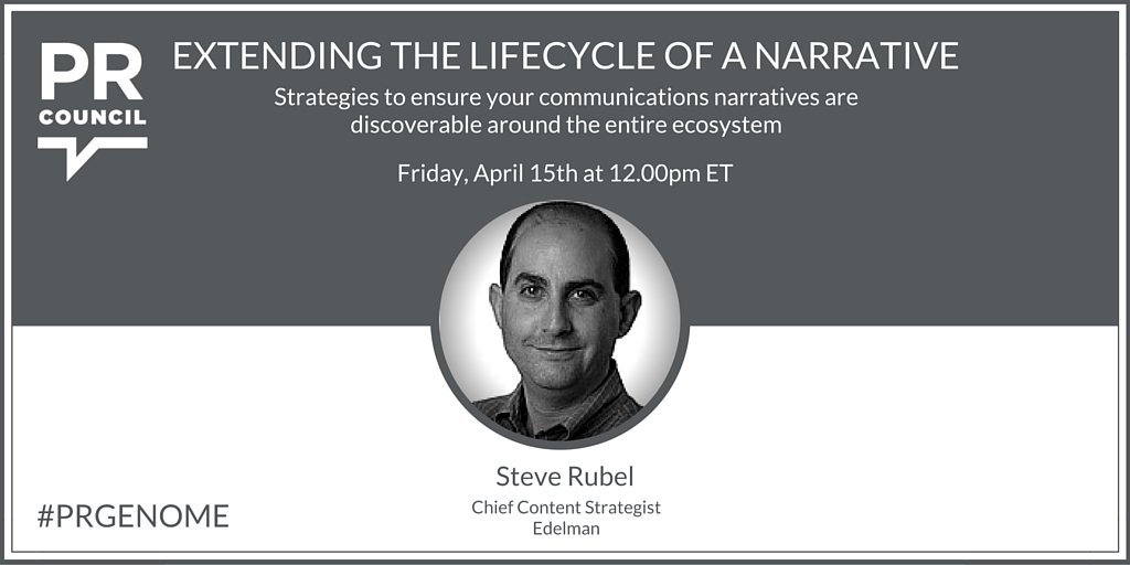 #PRGenome webinar this Friday w/@steverubel of@EdelmanPR! Reg here: http://bit.ly/1S8bcIQ pic.twitter.com/GpTVtMfI3M