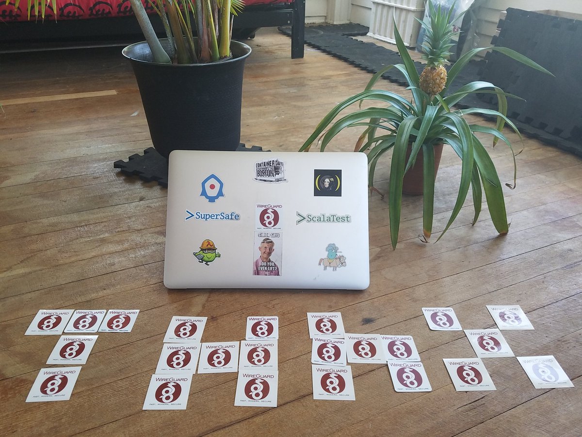 Got my (straight from France) wireguard stickers today THnX @zx2c4! I will gift one to my local parrot nest =) /cc @EdgeSecurity.pic.twitter.com/Q3IYZVK9Hp