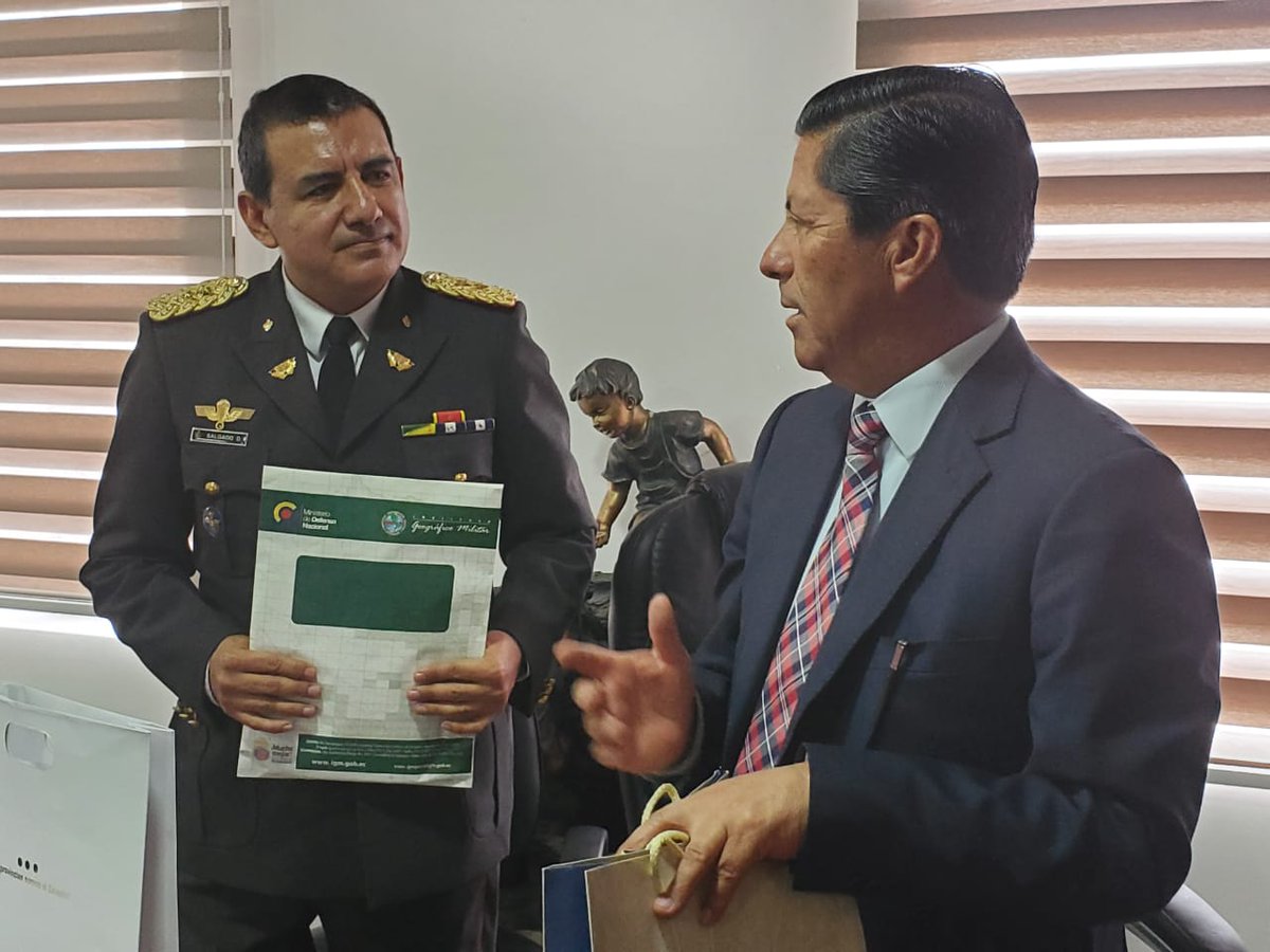 El presidente del CONGOPE, Pablo Jurado, y el delegado del IGM, Dehivi Salgado, suscribieron convenio de cooperación para entrega de geoinformación, transferencia de conocimientos y apoyo en gestión de información en procesos de elaboración de planes de ordenamiento territorial.pic.twitter.com/780KJey9Oz