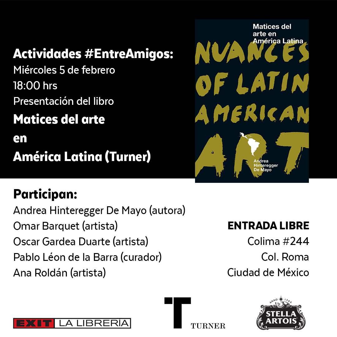 @EditorialTurner en el evento#EntreAmigos organizado por@EXITLaLibreria Sede: Colima 244 2 presentaciones de libros. -Matices del arte en América Latina de@andrea_artrepco / 5 de febrero a las 6pm -Árbol de huesos.#SandraPani / 8 de febrero a la 1pm#EntradaLibrepic.twitter.com/xipX0fkTuK