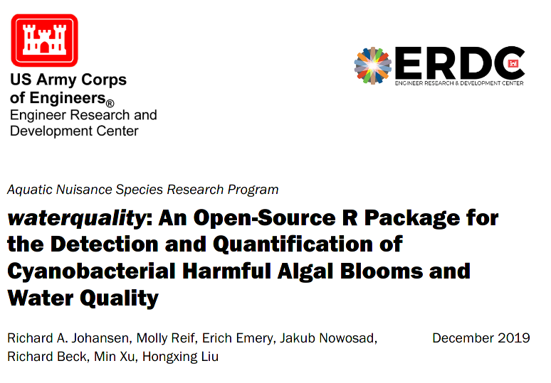 A new report about the waterquality R package is published. It describes methods for the detection and quantification of water quality proxies via remote sensing data and shows a case study of the package use. Read it at http://dx.doi.org/10.21079/11681/35053 …