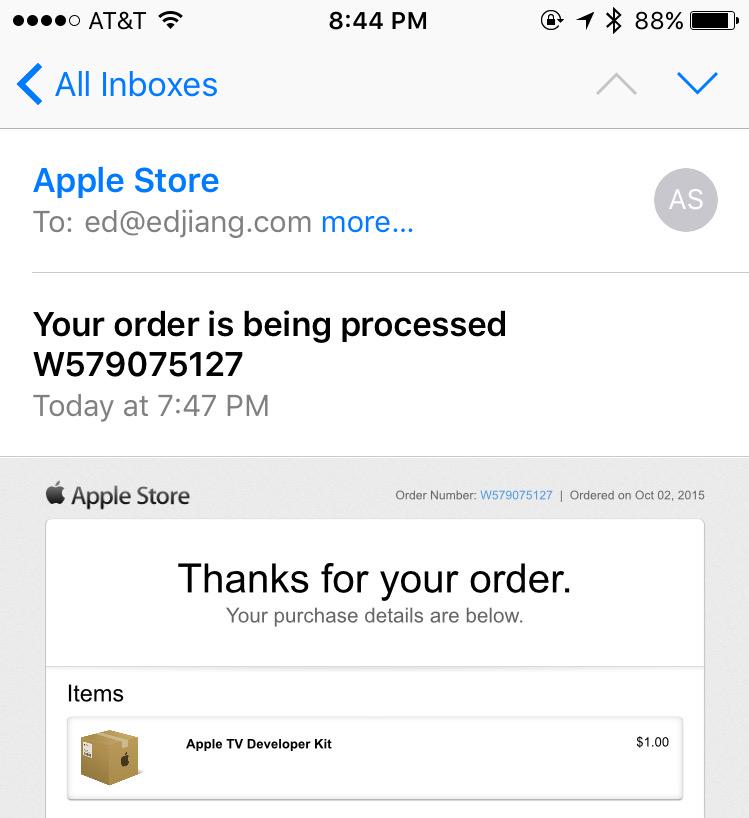 Got my Apple TV dev kit ordered! Time to make some of the first fart apps for Apple TV!pic.twitter.com/QJjLHhAx4G
