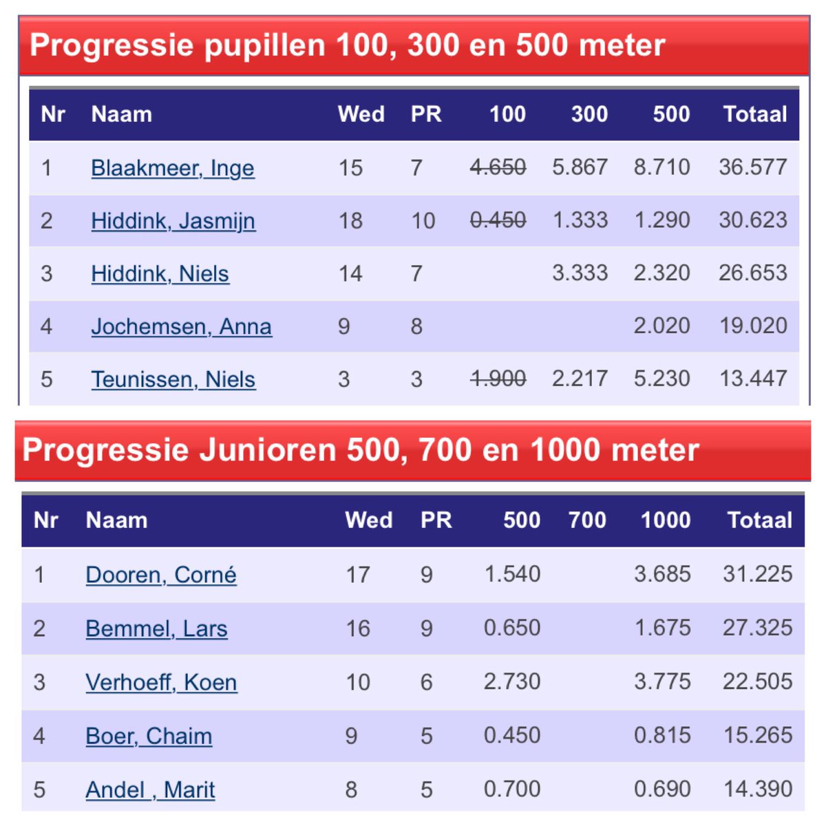 ‘t was even wachten op de officiële uitslagen van de zondagavond in Nijmegen, maar hier is dan het progressieklassement van deze week