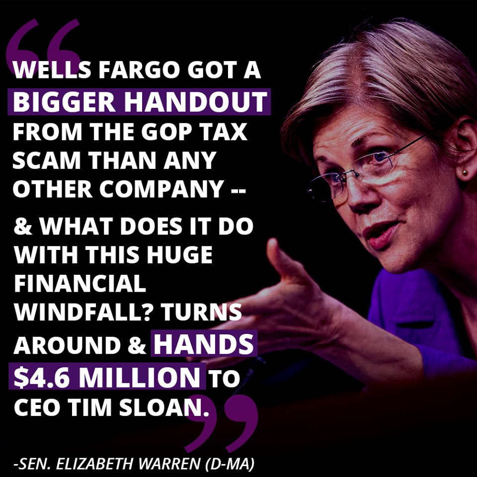 @SenWarren is absolutely right! The#TrumpTaxScam was designed to primarily benefit the wealthy and rich CEOs. It was never intended to help working families.pic.twitter.com/WpSHPdkDlZ