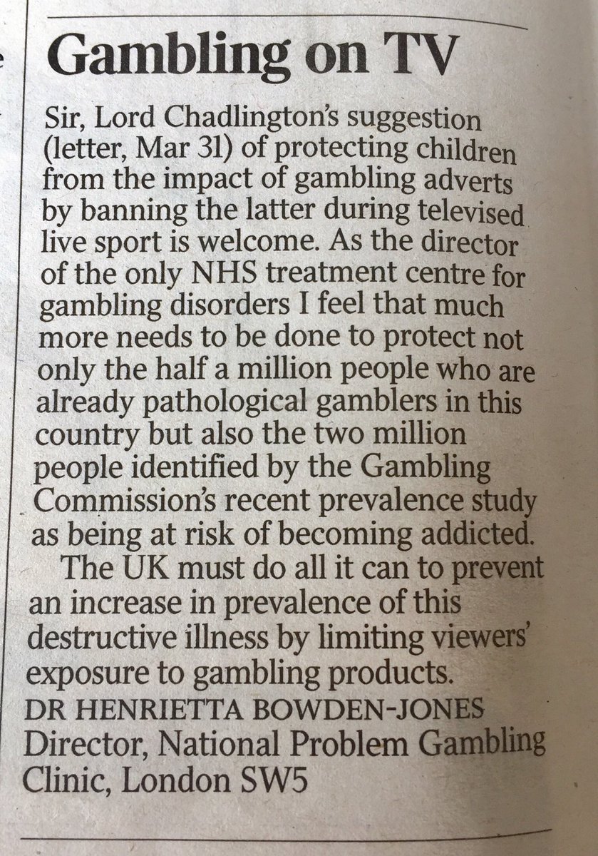 Couldn't agree more. It feels like there's been a huge rise in betting ads in the last couple of years PLUS apps at finger tips.https://twitter.com/artsciencedoc/status/981468193096073216 …