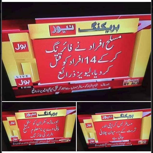 میرا وطن پھر لہو رنگ کیوں؟ مکران میں بسوں سے اتار کر باقاعدہ شناختی کارڈ چیک کر کہ 14 افراد کو شہید کیا گیا ان میں بیشتر کا تعلق سیکورٹی فورسز سے ہے۔ یہ حالیہ دنوں میں تیسرا بڑا دہشت گردی کا واقعہ ہے۔ اندازہ لگانا مشکل نہیں کہ یہ آستین کے سانپ کون ہیں