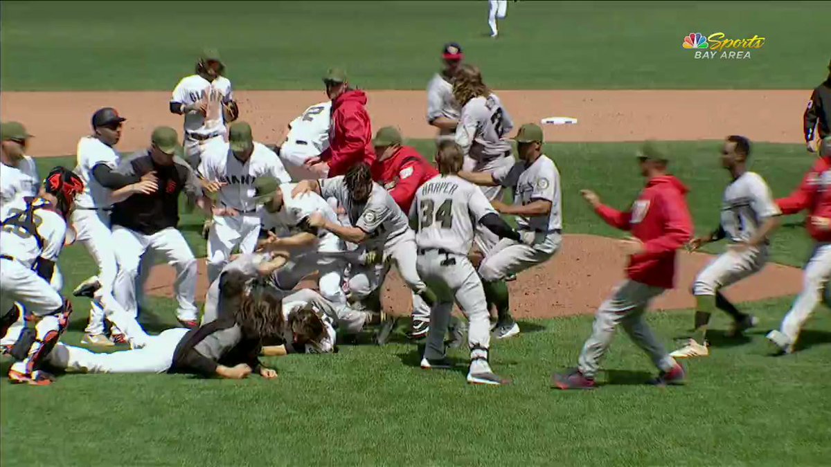 Buster Posey didn't do nothing and just watched Bryce Harper go at his pitcher? smh