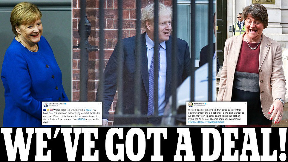 Brexit deal is DONE: Boris Johnson and Jean-Claude Juncker confirm the UK and EU HAVE agreed a divorce agreement https://trib.al/Y9DoEUt pic.twitter.com/7fUuorKGTz