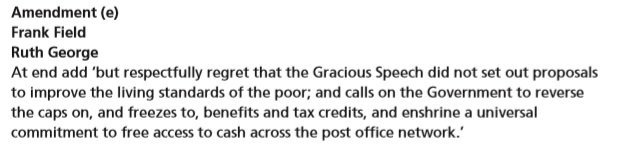 My amendment to the Queen's Speech, regretting the total absence of measures to help the poor https://twitter.com/frankfieldteam/status/1183728696080900098 …pic.twitter.com/UVaRP6I2k9