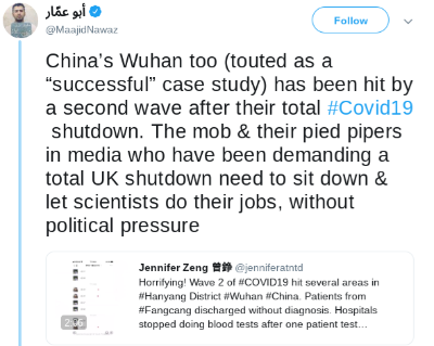 But it HASN'T. Didn't you look at the pictures I posted? They've got a second wave of infection in Wuhan. The virus doesn't just go away because you all sit indoors...
