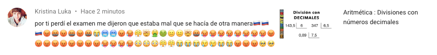 Me dicen que no pierda el tiempo con los "haters"... Ok, de acuerdo... Ni con los maleducados... Ok... Pero que me digan que han suspendido un examen por mi culpa porque hago mal las divisiones con decimales... https://youtu.be/xz-dVI4NUiU ¿Qué se hace? Un saludooooo