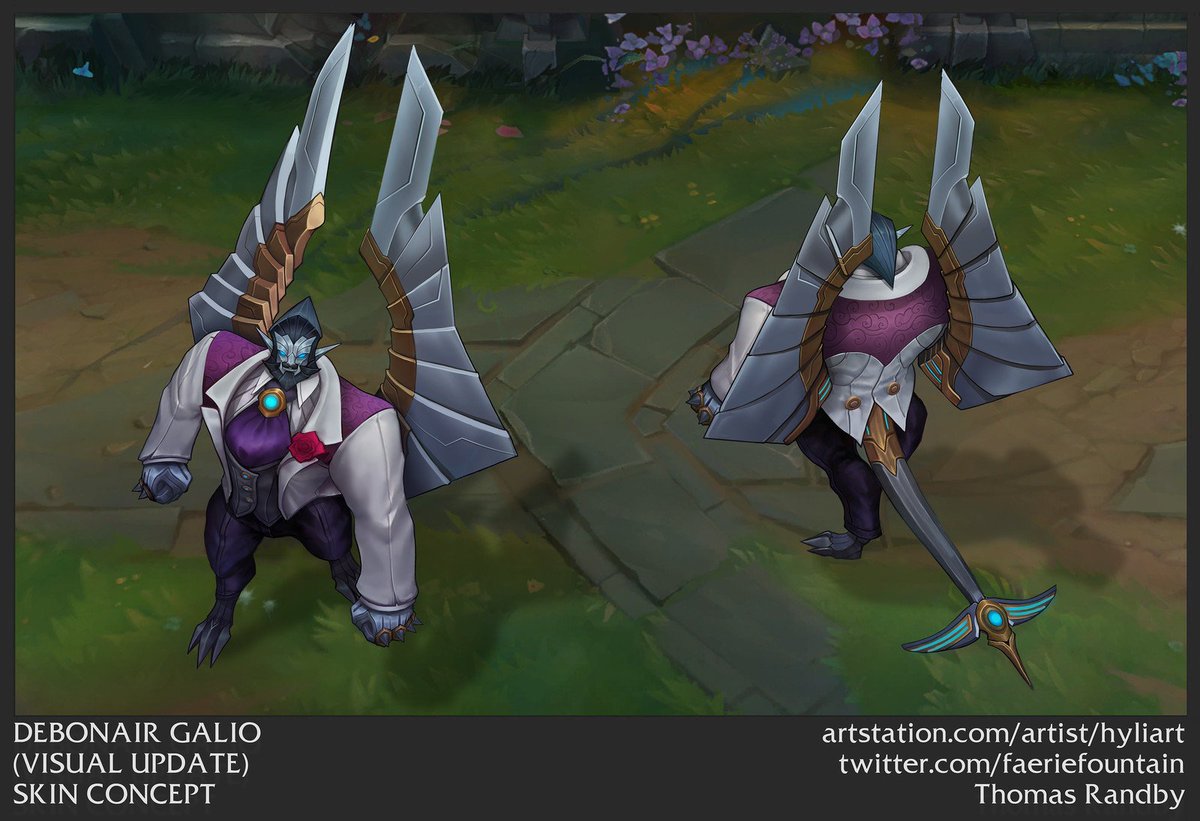Here's some of the concept work I had the honor of working on for the @leagueoflegends Debonair Galio update! So excited he's been revealed!pic.twitter.com/O8AbSTeVQd