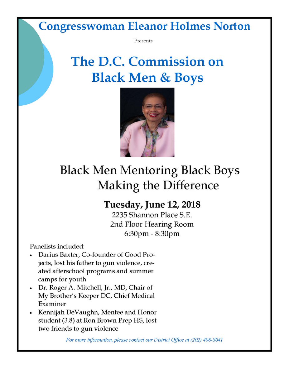 Next Tuesday, our DC Commission on Black Men and Boys will host a special event exploring the importance of mentoring in the Black community, particularly for young men who live in single-mother households. Members of the public are invited and encouraged to testify!pic.twitter.com/9Kki2qjjat