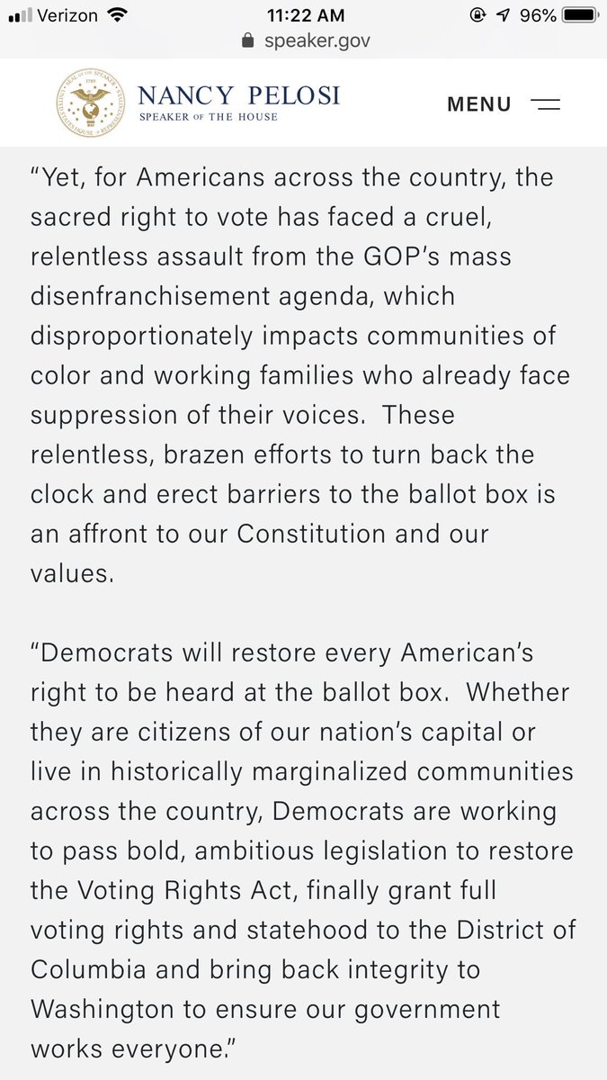 @SpeakerPelosi firmly endorses#DCstatehood bill#HR51 2019, not just this (awesome) press release from Pelosi, but even inclusion of expression of#DCstatehood core values in#HR1 2019, a bill of new Dem US Reps Majority's "day one" priorities.#DCstatehoodNewsThanks. Twitter will use this to make your timeline better. UndoUndo