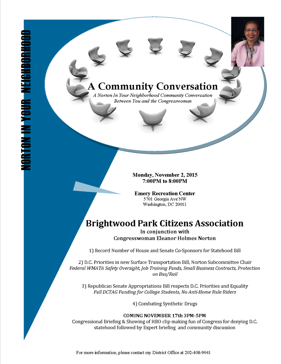 I'll be at Emery Rec Center in Brightwood Park tonight for a Norton in Your Neighborhood. Make your voice heard!pic.twitter.com/A7CBXL4nTC