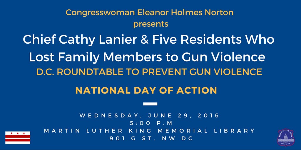 Come to MLK Library at 5pm today for a gun violence roundtable --follow-up to Dem sit-in--w/MPD Chief & DC families.pic.twitter.com/K63cCOm63y
