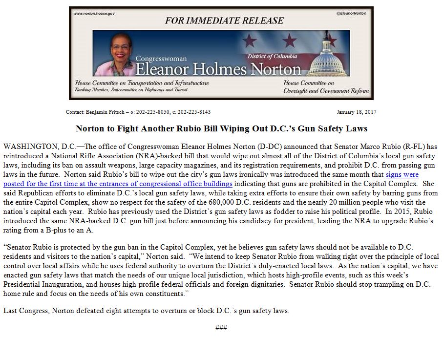 rejecting USSen Rubio (R-FL) using JimCrow tyranny powers over DC to attempt to remove DC gun safety laws.