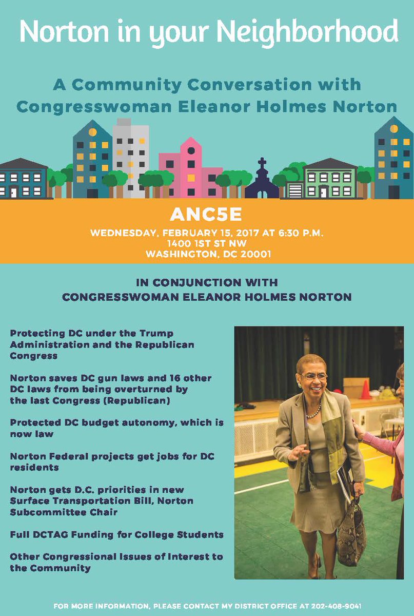 Thank you for your service and openness to the community @EleanorNorton and @ANC5E for organizing.