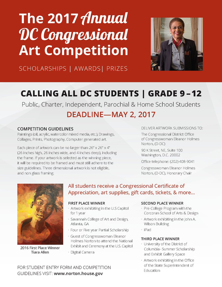 Encouraging all DC students to participate in the 2017 #CongressionalArtCompetition! For more info visit my website: https://norton.house.gov/services/art-competition …pic.twitter.com/VrwoAJyxIh