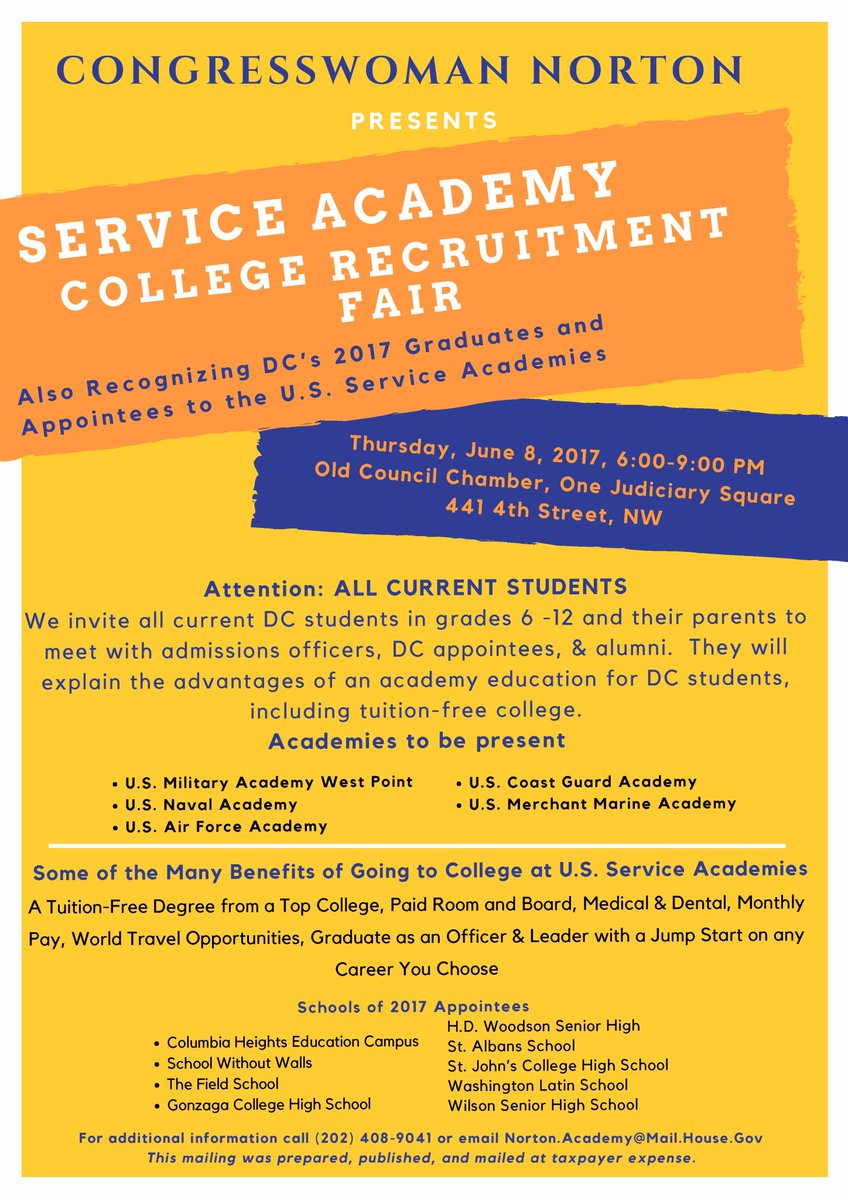 Tonight at our Service Academy Fair I’ll present my 10 nominees to the Academies and Prep Schools, all talented students from across DCpic.twitter.com/BPFkAc0X9Y