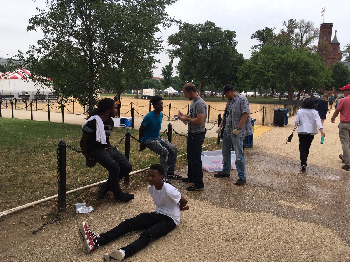 They were detained, no charges filed. Released to parents a short time later. "Vending on the National Mall is illegal without a permit"
