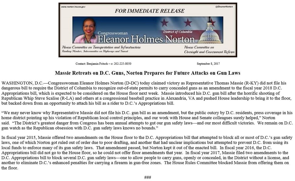 Eleanor Holmes Norton‏Verified account @EleanorNorton 8 Sep 2017