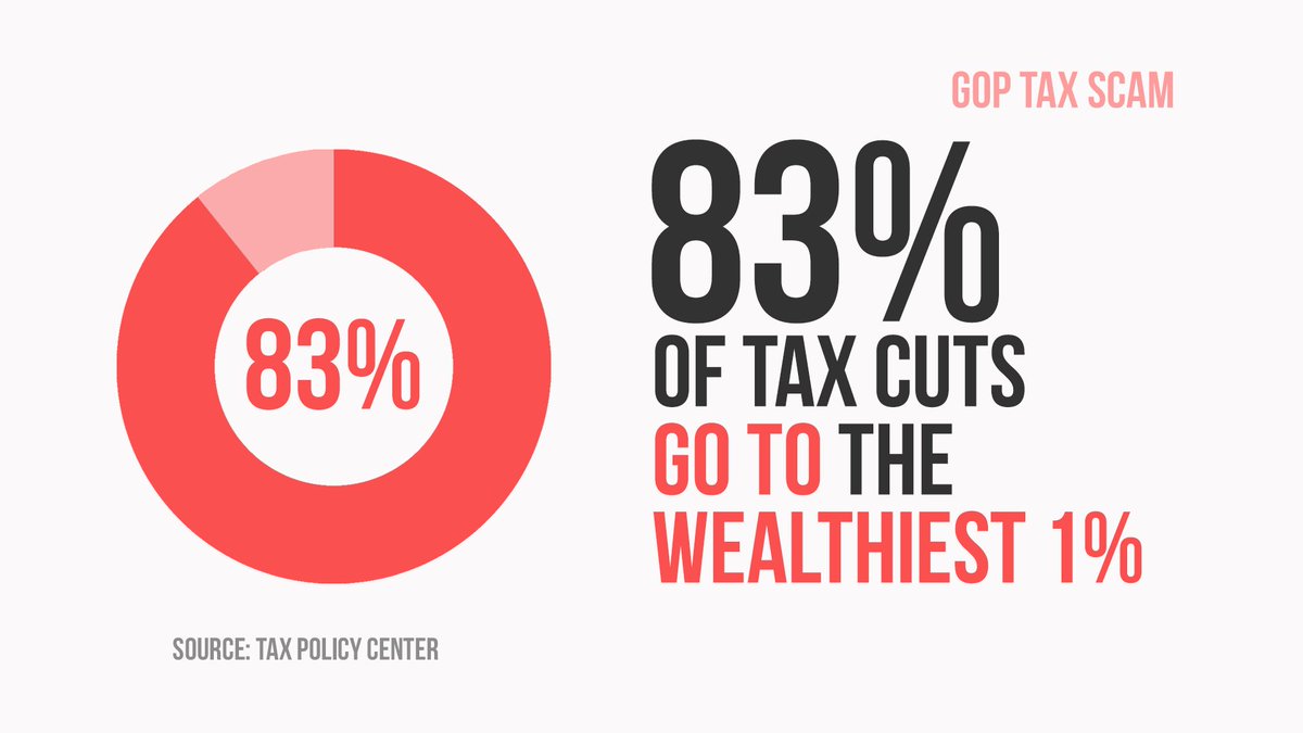3/ The #GOPTaxScam is a handout to richest Americans, wealthy GOP donors, and corporations. The top 1% get 83% of the benefits. It doubles the estate tax exemption from $11 million to $22 million. Corporations get $1.3 trillion tax cuts that are permanent.pic.twitter.com/x7K5PHFBUR