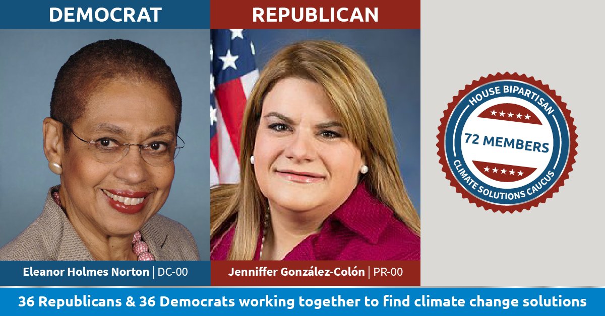 Puerto Rico's congressional representative @RepJenniffer has joined the #ClimateSolutionsCaucus, motivated by the devastation from Hurricane Maria. She comes aboard with D.C. rep @EleanorNorton. Thank you both for working on bipartisan #climate solutions! https://citizensclimatelobby.org/climate-solutions-caucus/ … pic.twitter.com/4EVwfccNjf
