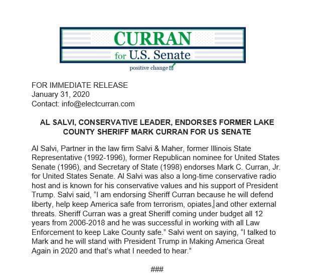 I'm honored to have the endorsement of conservative leader Al Salvi. He was the first Republican to take on Dick Durbin in 1996. The picture is from 2012, when Al was introducing me as sheriff and I was introducing then presidential candidate @RickSantorum. #ILSen #Twill #MAGApic.twitter.com/l01HCykBH2
