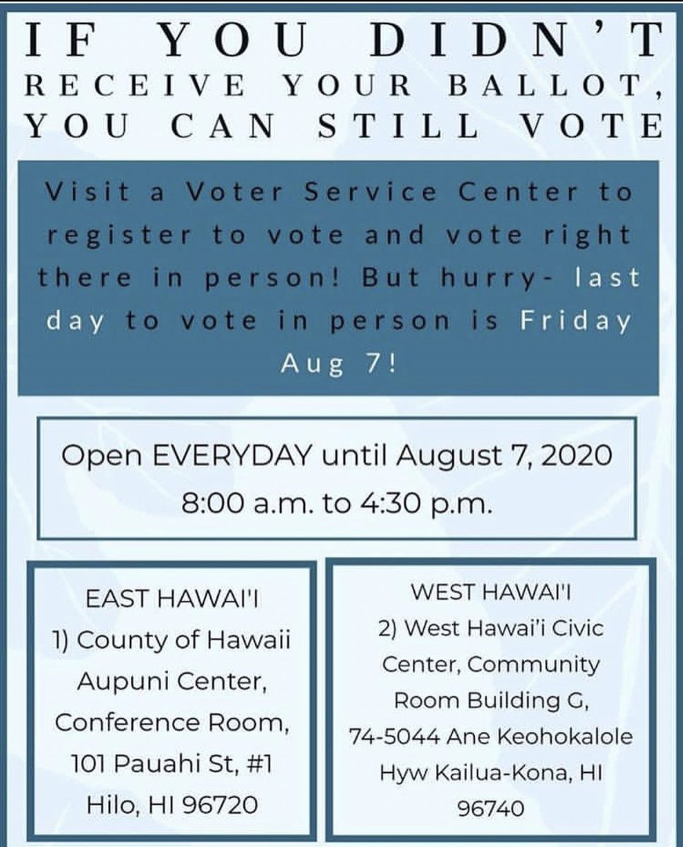- Ballots MUST be RECEIVED by 7 pm on August 8th