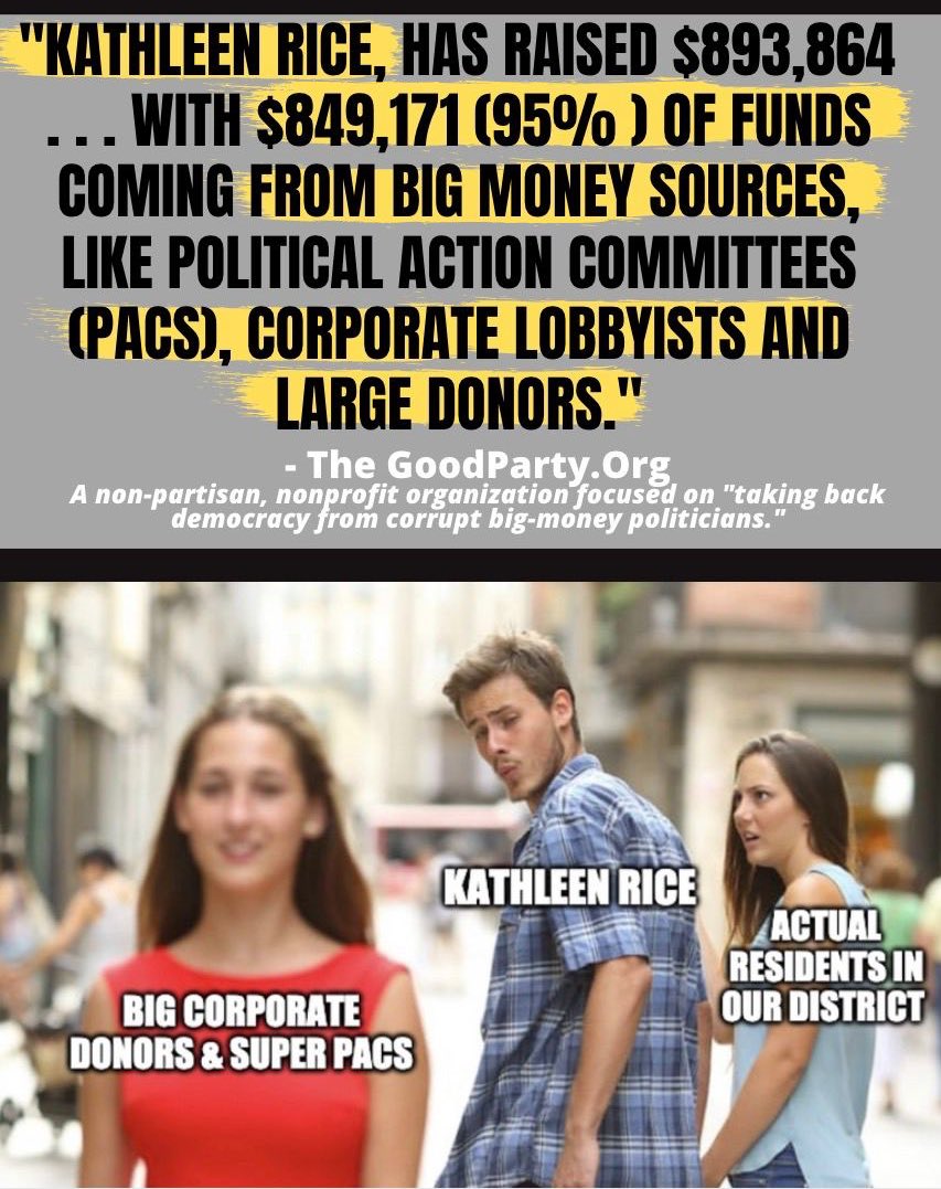 Big money special interests financed 95% of @RepKathleenRice’s campaign including PACs, lobbyists, and large donors. That’s why she’s an absentee Congresswoman never seen in #NY04.