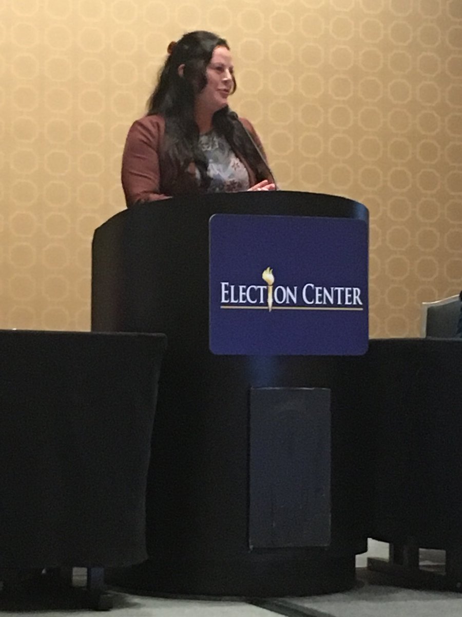 Julie Wise, King Co., WA winner of Election Center’s Professional Practices Paper Democracy award for “Why Vote? A Digital Media Campaign”pic.twitter.com/RlSY3JSFtg
