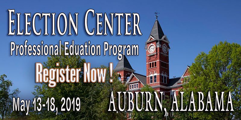 Election Center Professional Education Program Auburn Special Session May 13-18, 2019 The Hotel at Auburn University & Dixon Conference Center 241 South College Street Auburn, Alabama 36830 Register for Classes: https://www.electioncenter.org/national-association-of-election-officials/professional-education-program/certified-elections-registration-administrator/special-session/2019/registration/The-Election-Centers-Professional-Education-Program-Special-Session-Auburn-University-Auburn-Alabama-May-13-18-2019.pdf …pic.twitter.com/fde1xWneKk
