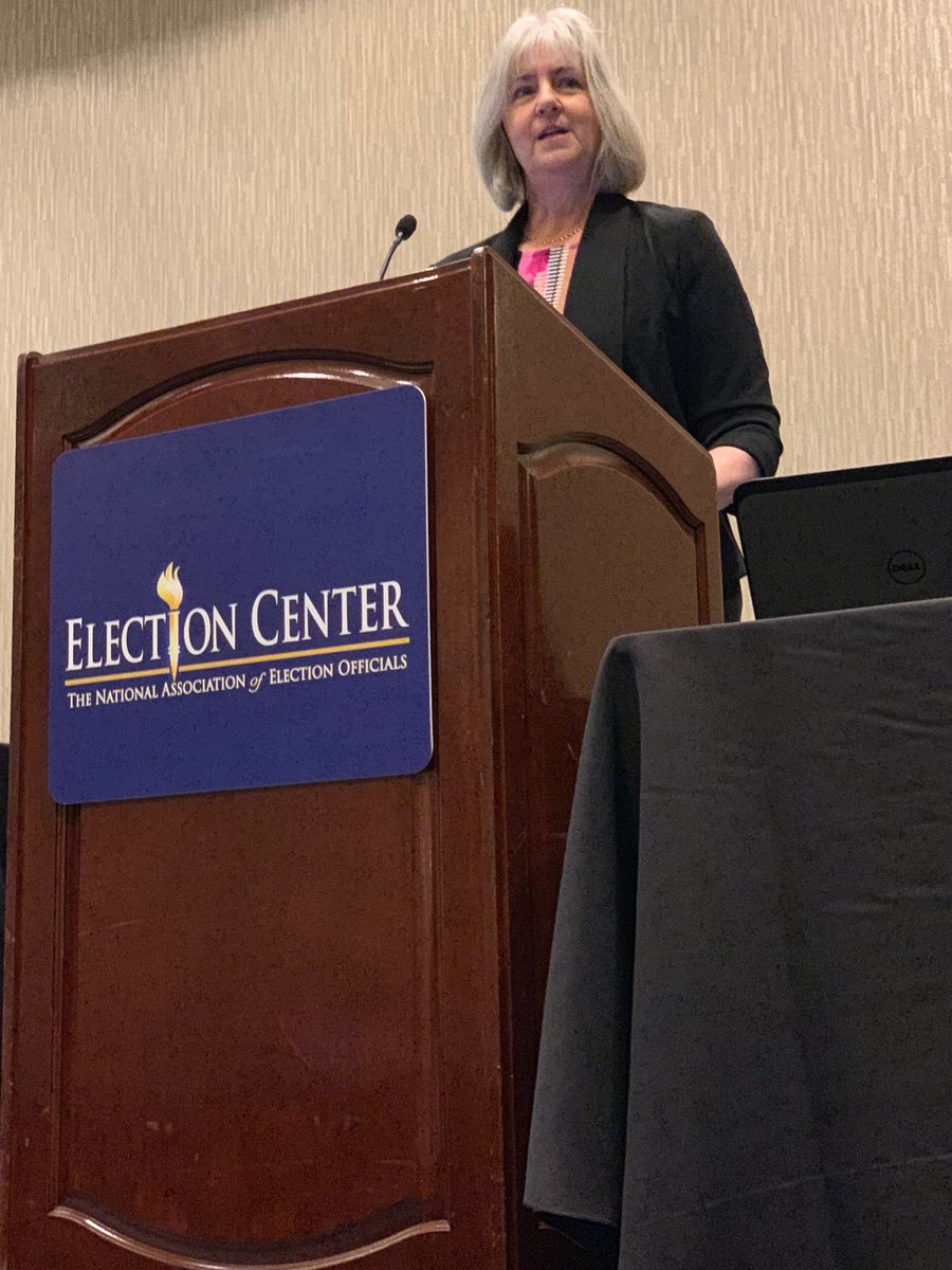 A warm welcome to our first speaker of the day, Donna Johnston of Sutter County, CA speaking on Customer Relations in Elections! #Elections #professionaltrainingpic.twitter.com/jY9i3CNxbb