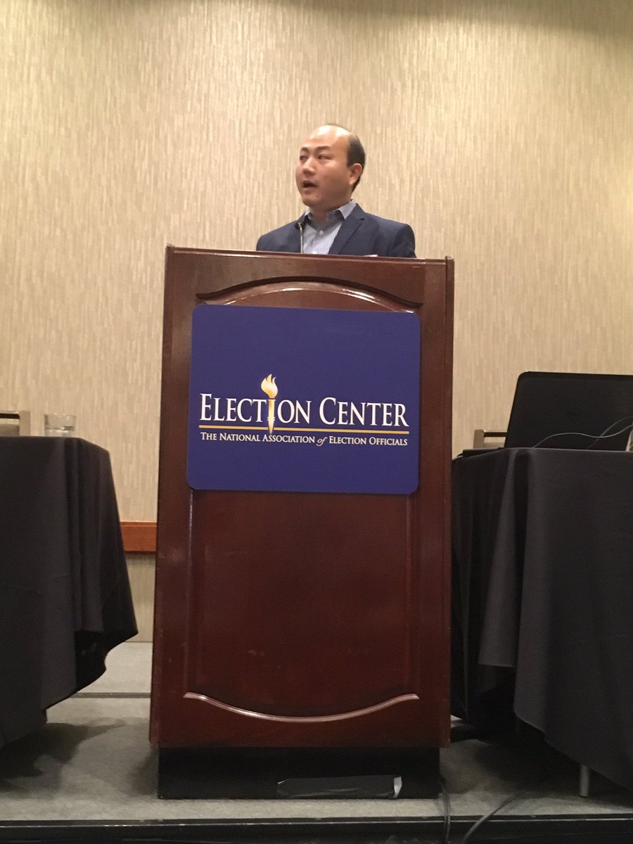 Tim Tsujii, Director of Elections, Forsyth Co., NC shares their innovative app on voting line wait times.pic.twitter.com/HfSWf44Bv1