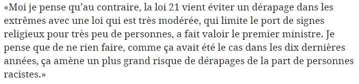 My french isn’t so good, but does that say that quebecers are now less at risk of being attacked by racists, because of the racist bill 21?https://twitter.com/stephenfgordon/status/1222678030734307328 …