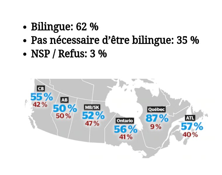 Sondage Léger : Est-ce que le prochain chef conservateur doit être bilingue, c’est-à-dire être capable de s’exprimer en anglais et en français ou ce n’est pas nécessaire qu’il soit bilingue ?pic.twitter.com/zBh54pVSxt