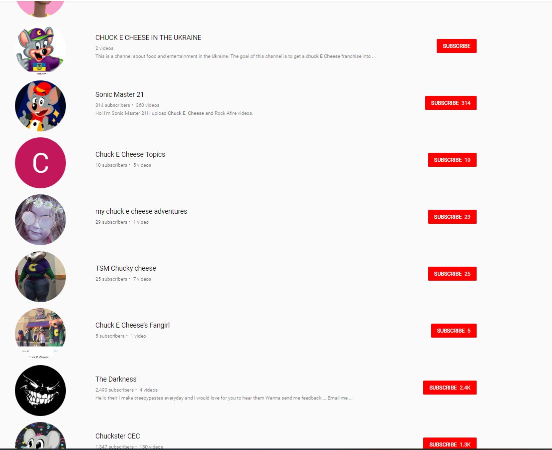 Please explain why dead channels and channels that doesn't have anything to do with Chuck E Cheese are top of the search list? this doesn't make any sense at all!!!pic.twitter.com/ID7ca4ajOi