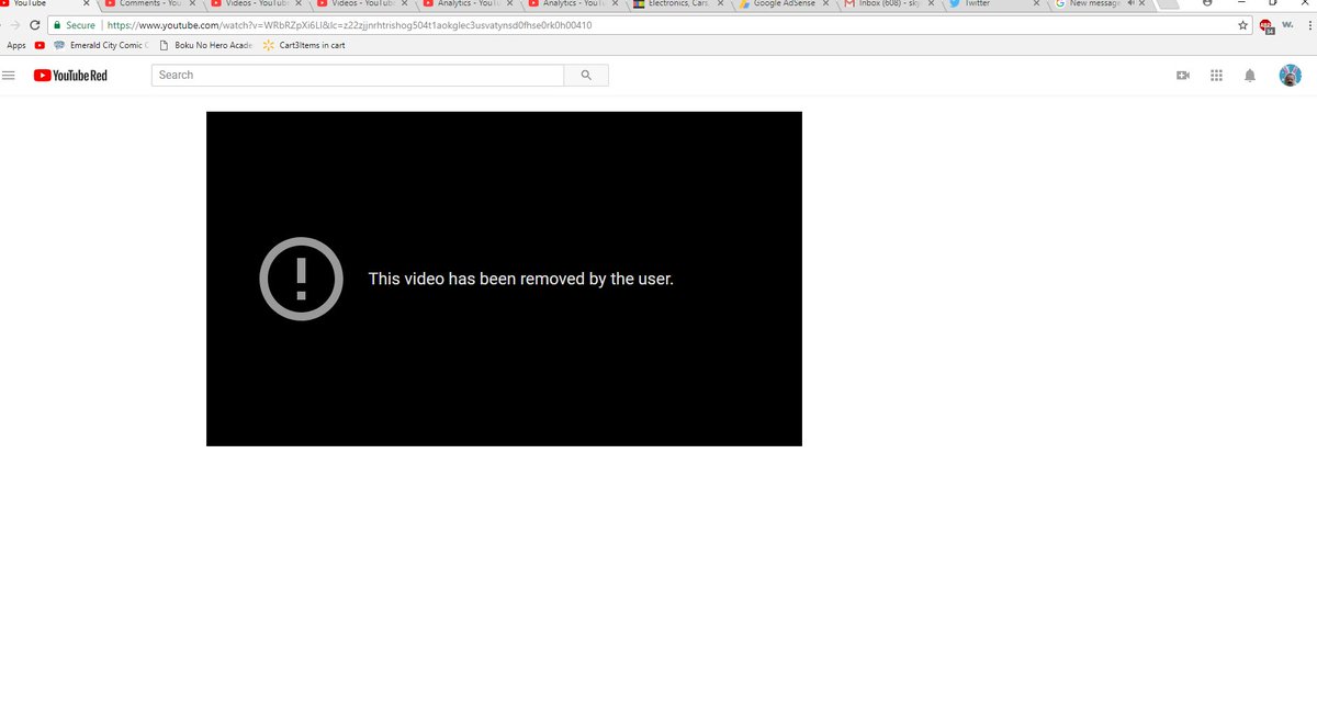 @YouTube @TeamYouTube Deleted my video and blamed it on me! I saw it right just now my video got deleted right in front of me then when i click on my link. It says this! this is the 2nd time in 3 days!!!!pic.twitter.com/IbpMgMbjmB